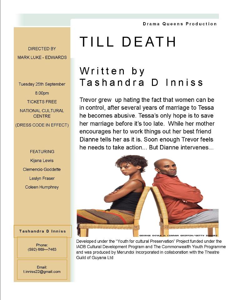 No, I’m not writing to preach about domestic violence, I’m writing about the play (and many others like it) which in my opinion can be used as an effective domestic violence awareness tool. It was well written by a very promising playwright, Tashandra Inniss, and the actors did an excellent job in bringing out the message.