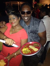 Monique Braithwaite dishes out Kerwin Bollers a mean curry and dhal puri!